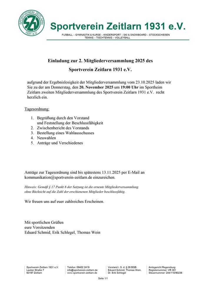 Willkommen beim Sportverein Zeitlarn 1931 e.V.!