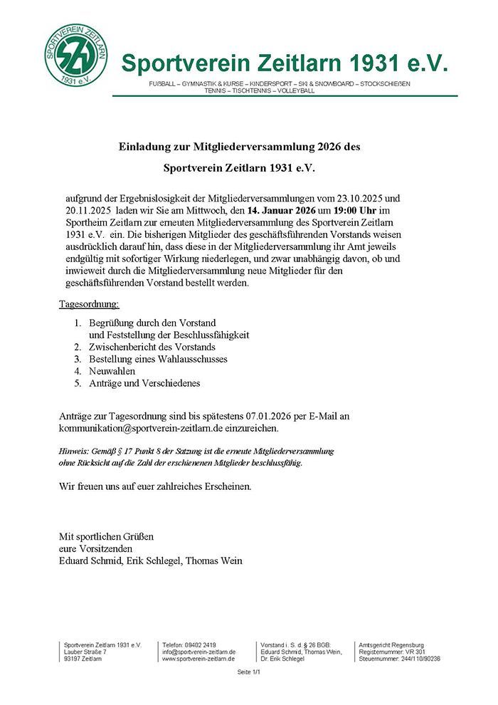 Willkommen beim Sportverein Zeitlarn 1931 e.V.!